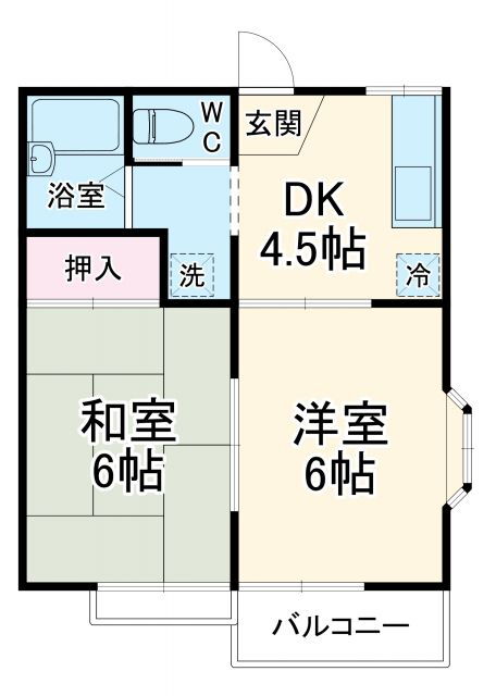 | 間取り | 2DK(和6.0 洋6.0 DK4.5) | 築年月(築年数) | 1994年1月(築32年1ヶ月) |
