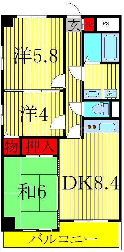 | 間取り | 3DK(和5.5 洋5.8 洋4.0 DK8.4) | 築年月(築年数) | 1996年3月(築29年8ヶ月) |
