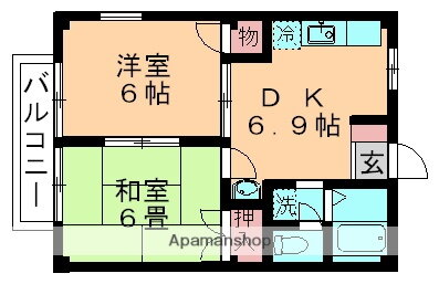 | 間取り | 2DK(和6 洋6 DK6.9) | 築年月(築年数) | 1994年9月(築31年4ヶ月) |