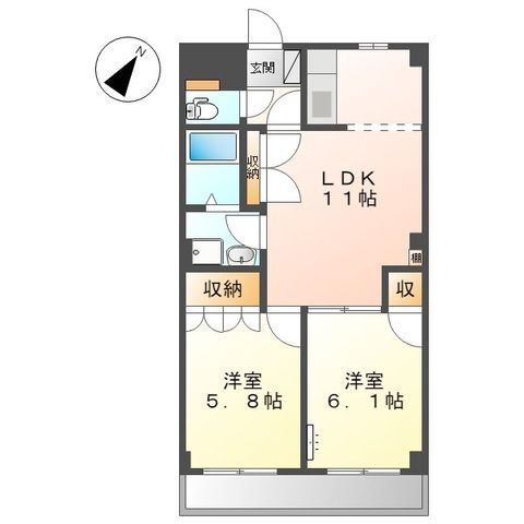 | 間取り | 2LDK(洋6.1 洋5.8 LDK11.0) | 築年月(築年数) | 2003年10月(築22年2ヶ月) |