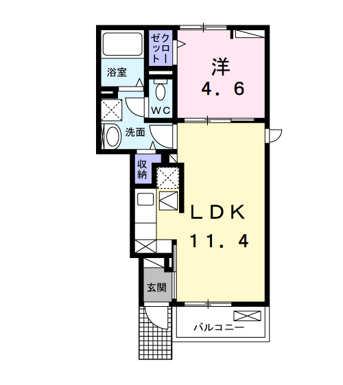 1LDK(洋4.6 LDK11.4) |