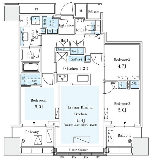 3LDK(洋6.0 洋5.0 洋4.7 LDK18.6) |