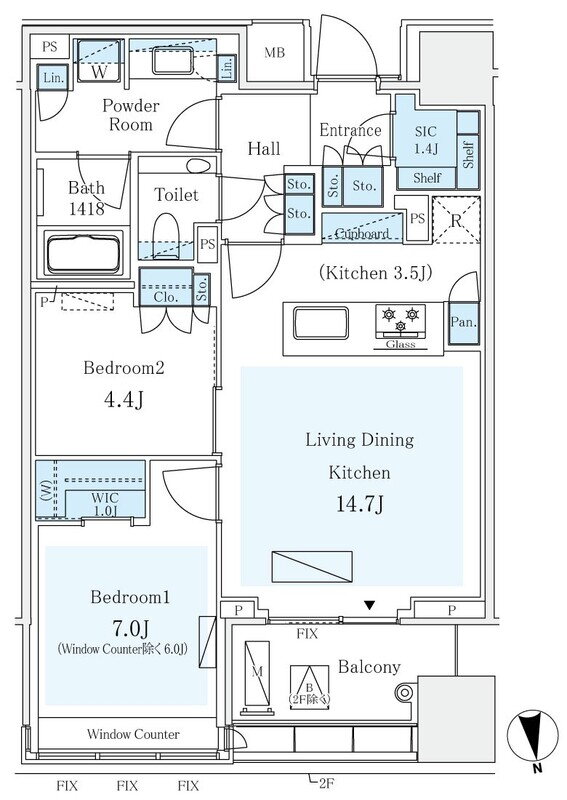 2LDK(洋7.0 洋4.4 LDK14.7) |