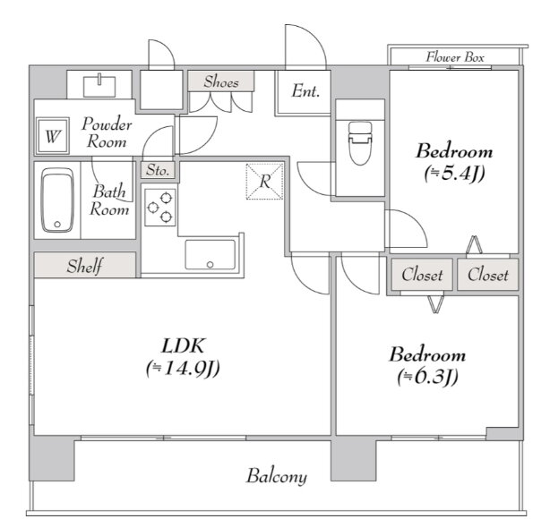 2LDK(洋6.3 洋5.4 LDK14.9) |