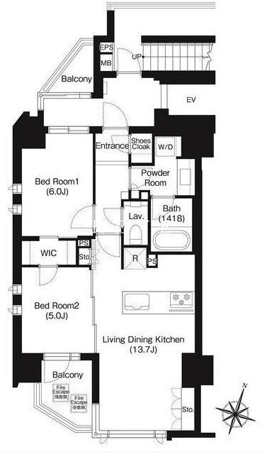 2LDK(洋6.0 洋5.0 LDK13.7) |