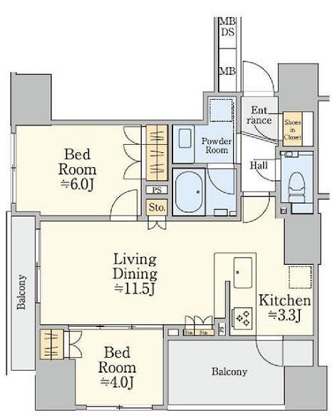 2LDK(洋6.0 洋4.0 LDK14.8) |