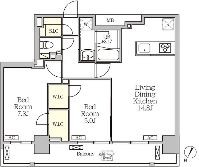 2LDK(洋7.3 洋5 LDK14.8) |