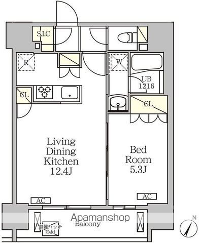 1LDK(洋5.3 LDK12.4) |