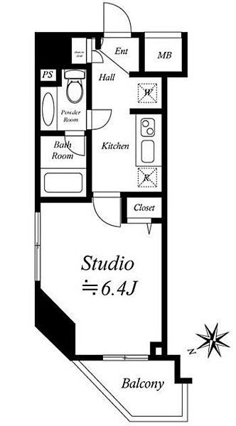 | 間取り | 1K(洋6.4) | 築年月(築年数) | 2006年1月(築19年12ヶ月) |