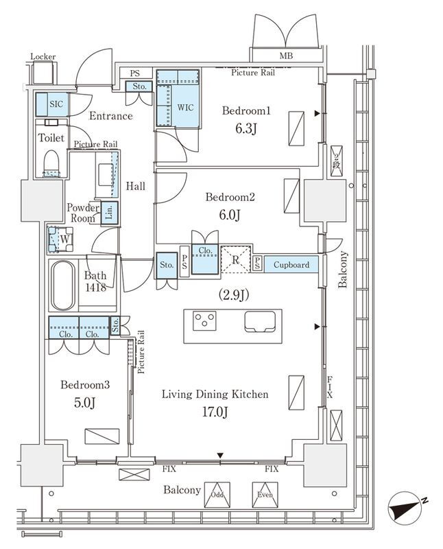 | 間取り | 3LDK(洋6.3 洋6.0 洋5.0 LDK17.0) | 築年月(築年数) | 2025年1月(築1年3ヶ月) |