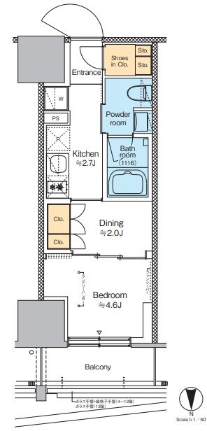1DK(洋4.6 D2.0K2.7) |