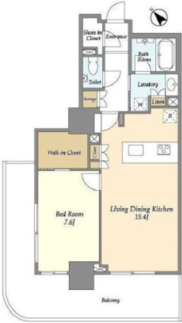 1LDK(洋7.6 LDK15.4) |