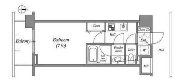 | 間取り | 1K(洋7.9) | 築年月(築年数) | 2013年1月(築12年11ヶ月) |