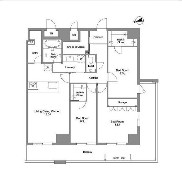 3LDK(洋8.5 洋7.5 洋6.3 LDK15.5) |