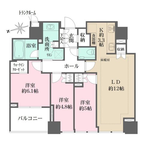 3LDK(洋6.1 洋5.0 洋4.8 LDK15.3) |