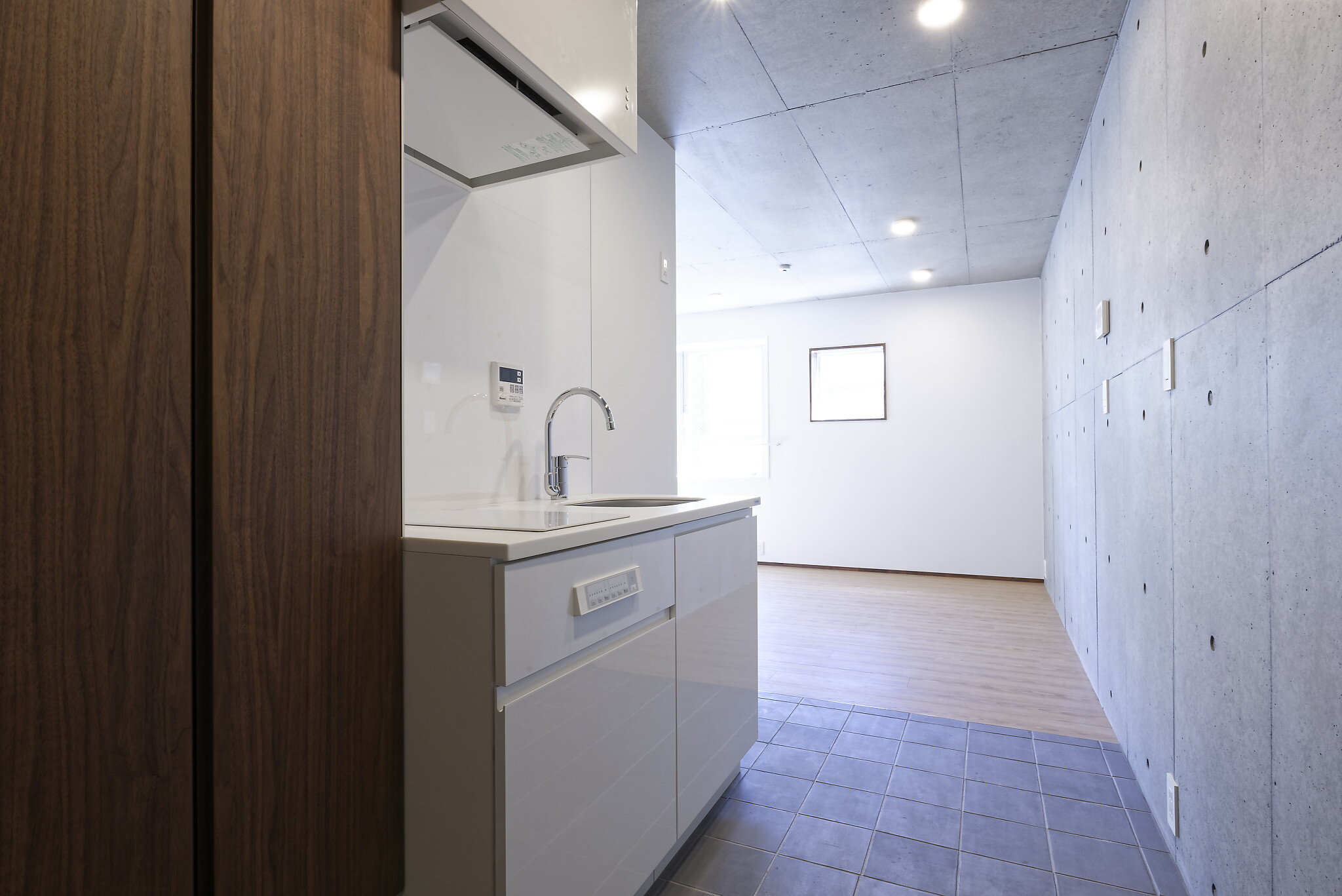 - デザイナーズマンション・「神楽坂駅」徒歩5分・南向き 石畳瓦風の土間にコンクリート打ち放しの壁がお洒落な内装。一人暮らしに丁度良い広さ。南向き2面採光につき明るい室内。角住戸。