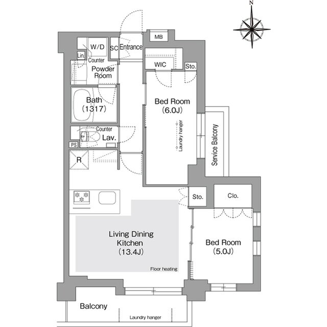 2LDK(洋6 洋5 LDK13.4) |