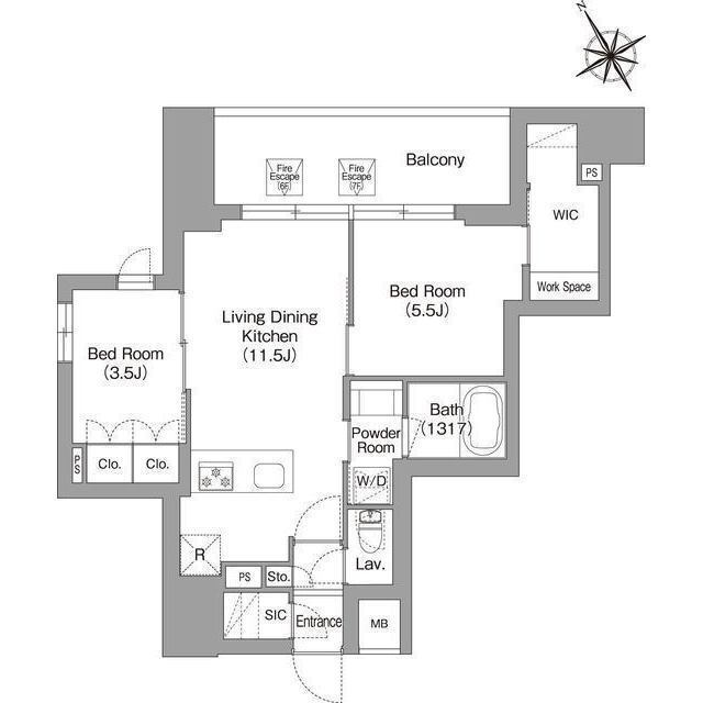 2LDK(洋5.5 洋3.5 LDK11.5) |