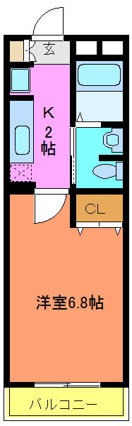 | 間取り | 1K(洋6.8 K2) | 築年月(築年数) | 2006年2月(築19年9ヶ月) |