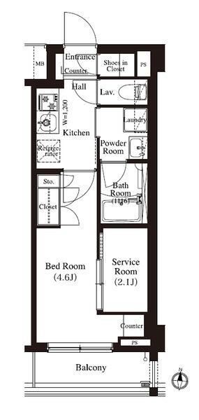 ワンルーム(洋4.6 納戸 2.1) |