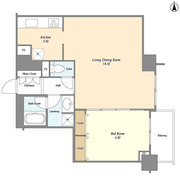 | 間取り | 1LDK(洋6.4 LDK14.0) | 築年月(築年数) | 2006年7月(築19年6ヶ月) |