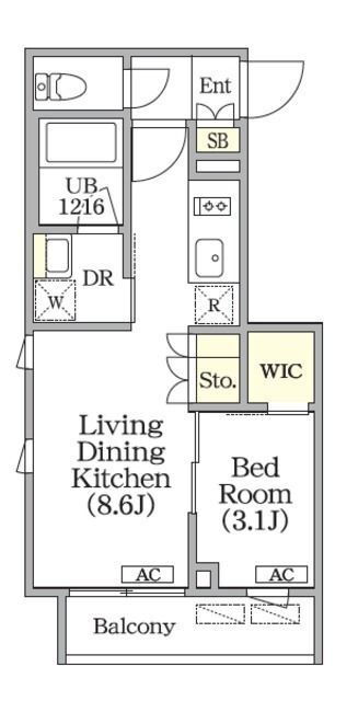 | 間取り | 1LDK(洋3.1 LDK8.6) | 築年月(築年数) | 2024年12月(築1年1ヶ月) |