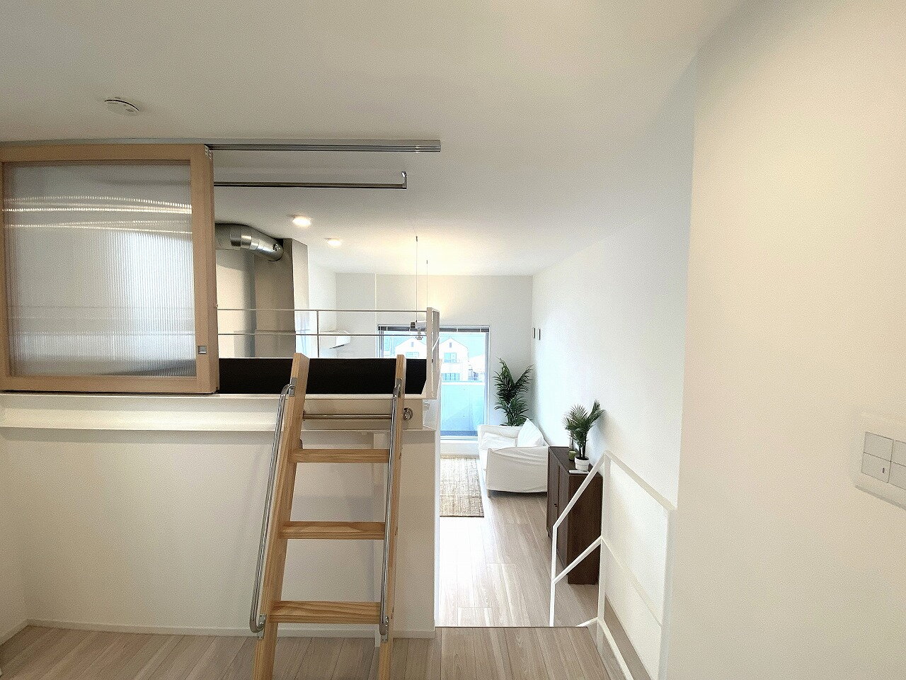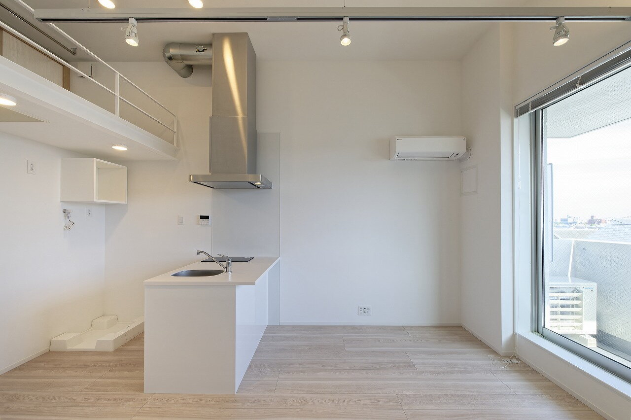 - 築浅デザイナーズ 1LDK+ロフト 南向きの開放的なリビング 築浅デザイナーズマンション 天井高の高い吹き抜け空間設計 最上階角部屋 ロフト付き1LDK