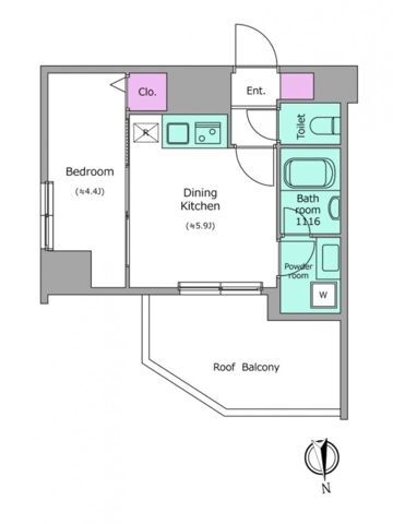 | 間取り | 1DK(洋4.4 DK5.9) | 築年月(築年数) | 2022年1月(築3年10ヶ月) |