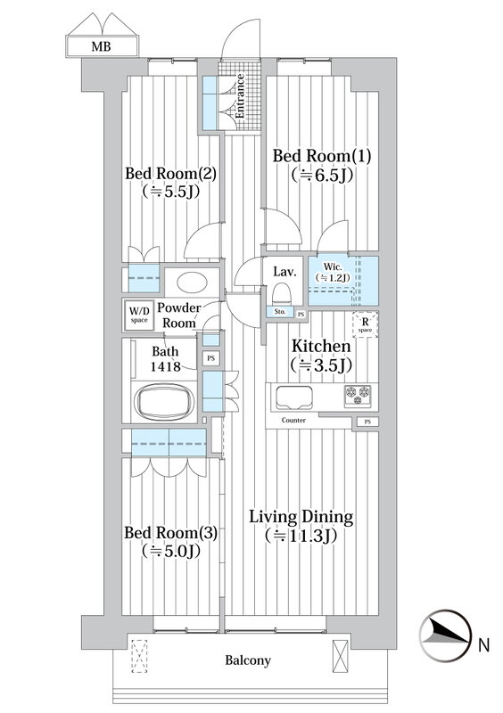 3LDK(洋6.5 洋5.5 洋5 LDK14.8 納戸 1.2) |