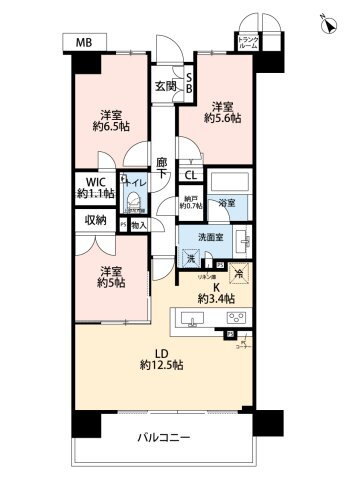 3SLDK(洋6.5 洋5.6 洋5.0 LDK15.9 納戸 0.7) |