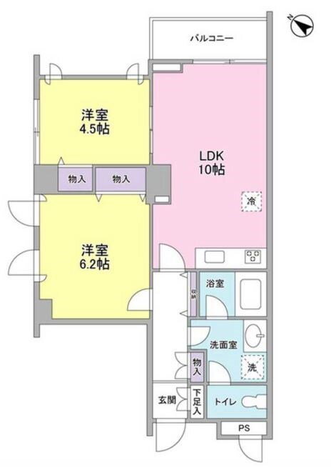 2LDK(洋6.2 洋4.5 LDK10) |