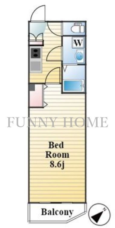 | 間取り | 1K(洋8.6) | 築年月(築年数) | 2020年2月(築6年) |