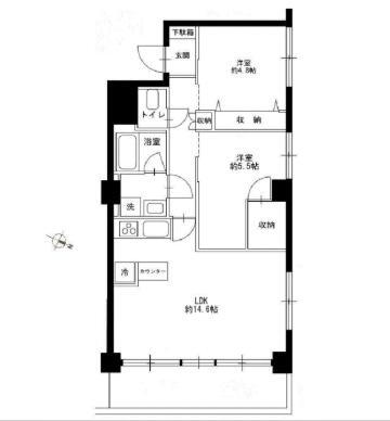 | 間取り | 2LDK(洋5.5 洋4.8 LDK14.6) | 築年月(築年数) | 1969年4月(築56年7ヶ月) |