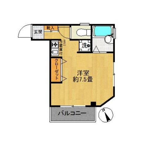 | 間取り | ワンルーム(洋7.5) | 築年月(築年数) | 2003年6月(築22年5ヶ月) |