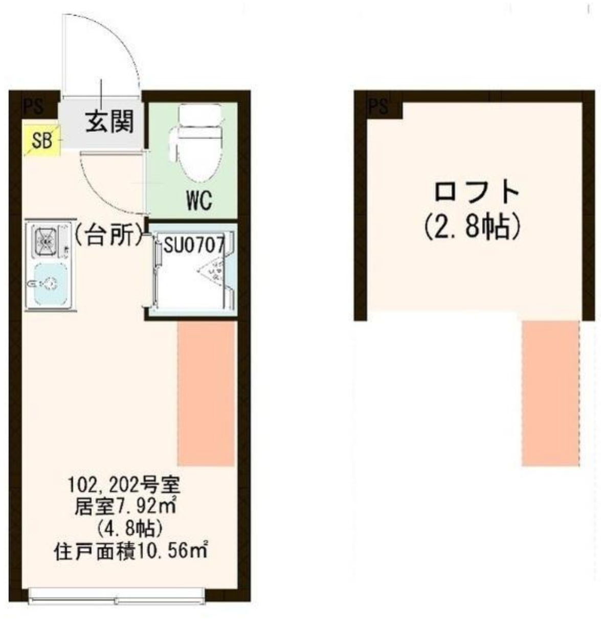 ワンルーム(洋4.8 ロフト 2.8) |