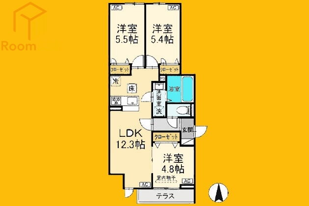 3LDK(洋5.5 洋5.4 洋4.8 LDK12.3) |