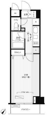 | 間取り | 1K(洋8.1 K1.7) | 築年月(築年数) | 2006年1月(築19年12ヶ月) |