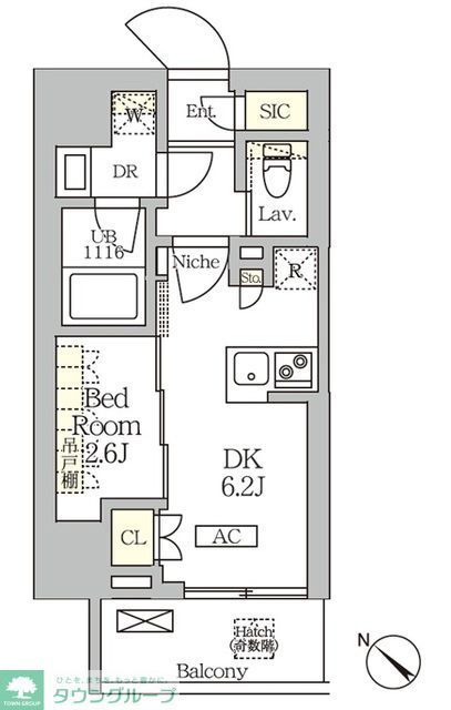 間取り 1DK(洋2.6 DK6.2) 築年月(築年数) 2026年3月 新築