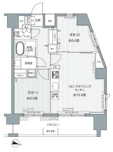 2LDK(洋8.0 洋5.0 LDK12.5) |