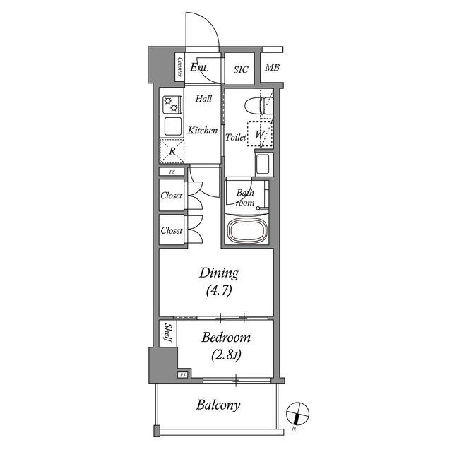 | 間取り | 1DK(洋2.8 DK4.7) | 築年月(築年数) | 2021年4月(築4年7ヶ月) |