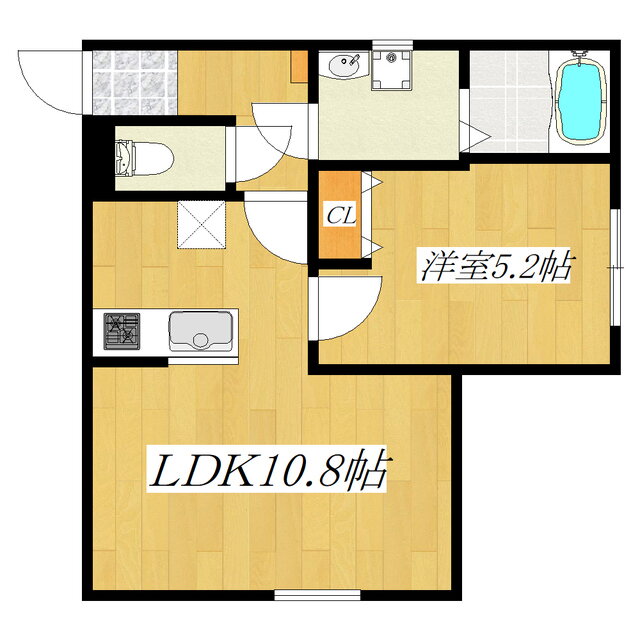 | 間取り | 1LDK(洋5.2 LDK10.8) | 築年月(築年数) | 2025年3月(築1年未満) |