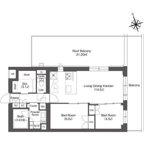 2LDK(洋6 洋4.5 LDK14.5) |
