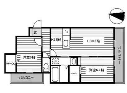 2LDK(洋6.2 洋6.0 LDK10.8) |