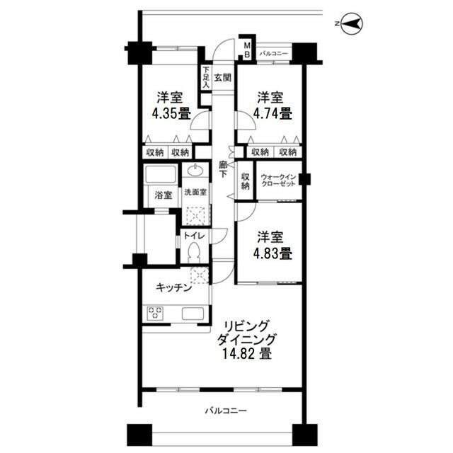 3LDK(洋4.8 洋4.7 洋4.3 LDK14.8) |