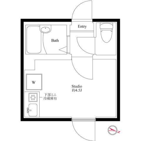 | 間取り | ワンルーム(洋4.5) | 築年月(築年数) | 2021年2月(築4年11ヶ月) |