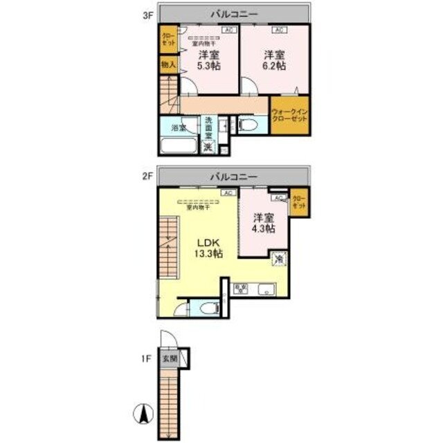 3LDK(洋6.2 洋5.3 洋4.3) |