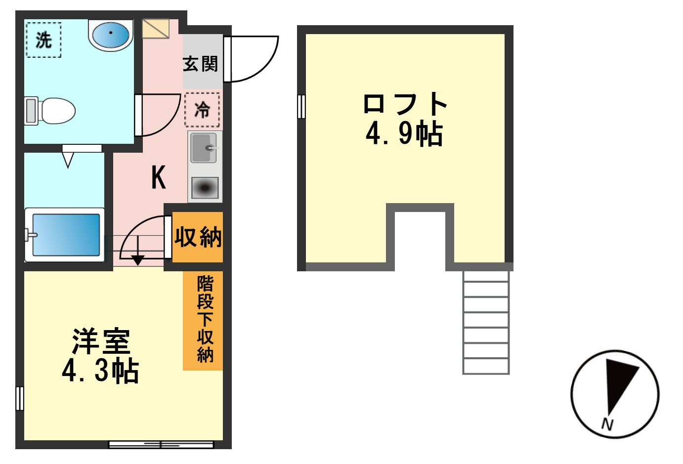 ワンルーム(洋4.3 ロフト 4.9) |