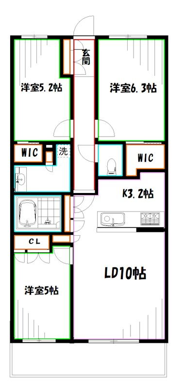 3LDK(洋6.3 洋5.2 洋5 LDK13.2) |