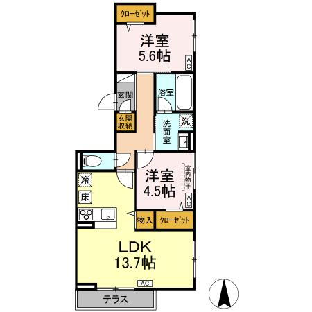 2LDK(洋5.6 洋4.5 LDK13.7) |