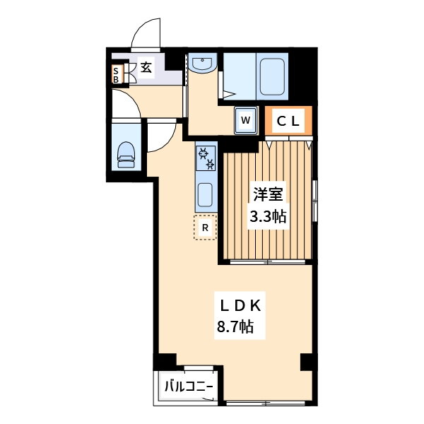 1LDK(洋3.3 LDK8.7) |